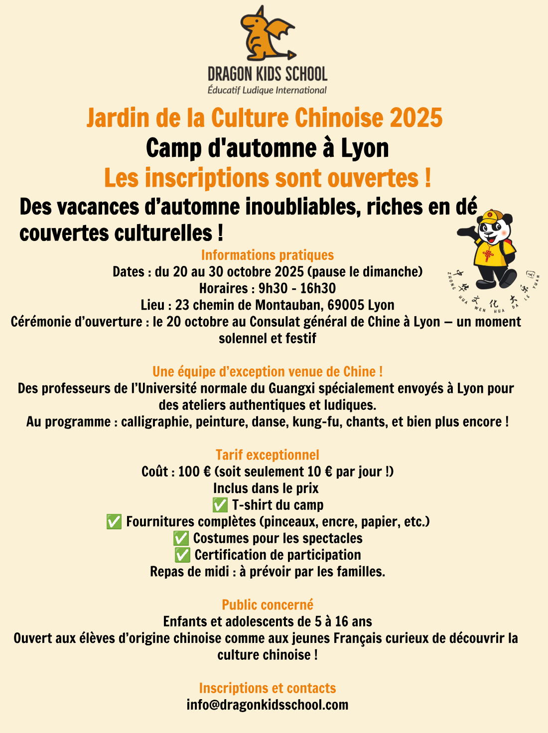 Jardin de la Culture Chinoise Camp de Lyon 2025 – SANS HERBERGEMENT