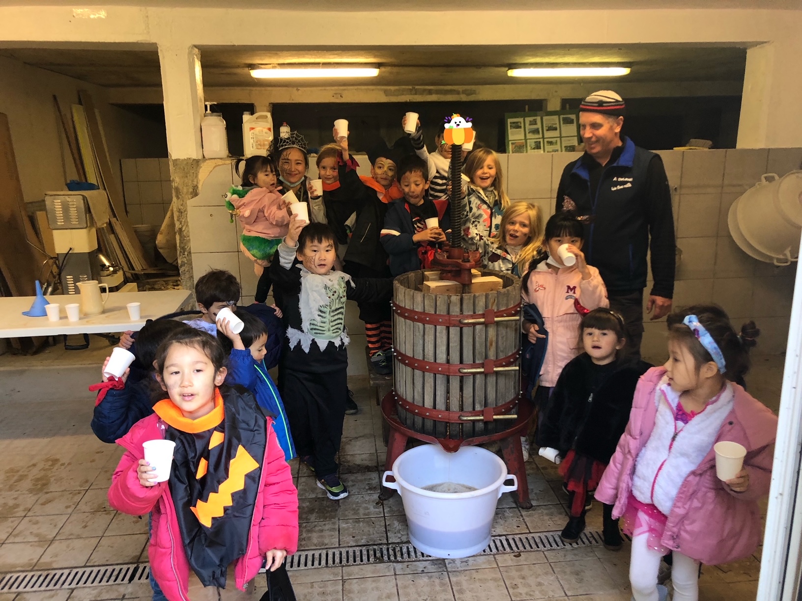 L’un des moments forts de la journée a été la dégustation du jus de pomme fraîchement pressé. Les enfants ont été invités à participer activement à la préparation du jus en pressant les pommes qu’ils avaient eux-mêmes récoltées. Leurs yeux pétillaient de joie alors qu’ils tournaient la manivelle du pressoir, transformant les pommes en un nectar doré et sucré. Le jus de pomme résultant était non seulement délicieux, mais il portait aussi la saveur de l’effort collectif, de la coopération et de la récompense.